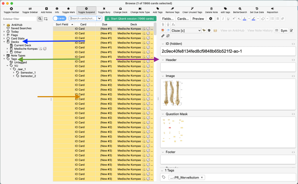- Tags zijn een hulpmiddel om je kaarten te organiseren. Bijvoorbeeld, als je alleen kaarten over een bepaalde practicum of onderwerp wilt bestuderen, kun je ze gemakkelijk vinden als ze correct getagd zijn.